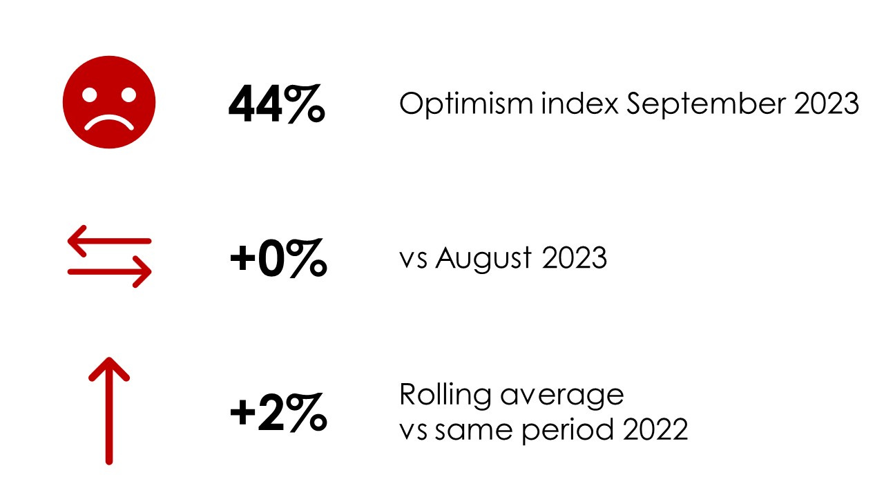 There has been some better news on the economy in recent weeks with inflation (CPIH) down to 6.3% and with no further increase in interest rates last month. However, most consumers aren’t feeling it; net confidence in the national economy is lower now than it was in the spring and summer. In addition, there was a noticeable increase in concern about the cost of living in September.