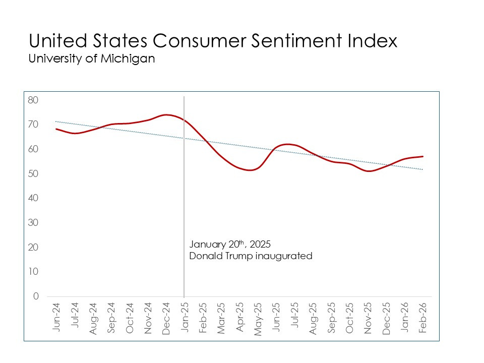 The University of Michigan sentiment index measures how Americans feel about their own finances and the American economy generally. As with any average figure, a lot of nuance is concealed beneath the headline. The overall number was held up by wealthier, college-educated Americans - often those holding stocks. Sentiment among Americans with lower incomes and without investment portfolios declined.